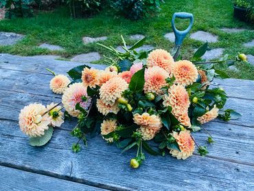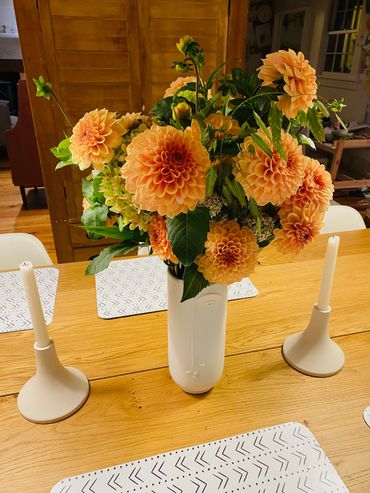 Elliot’s Wiggle is a 2022 seedling and holds a special place in the garden as the very first one we ever selected. It’s named after my daughter and the adorable little happy dance—her “wiggle”—she used to do whenever she saw French fries. This early bloomer is a reliable workhorse, producing soft orange decorative blooms with playful pink wolf petals. As the season cools, the color shifts—taking on more pink tones with each passing week. The plant stands about 5 feet tall with dark green leaves and strong, brownish stems that hold up well in the field.